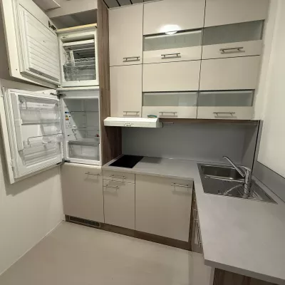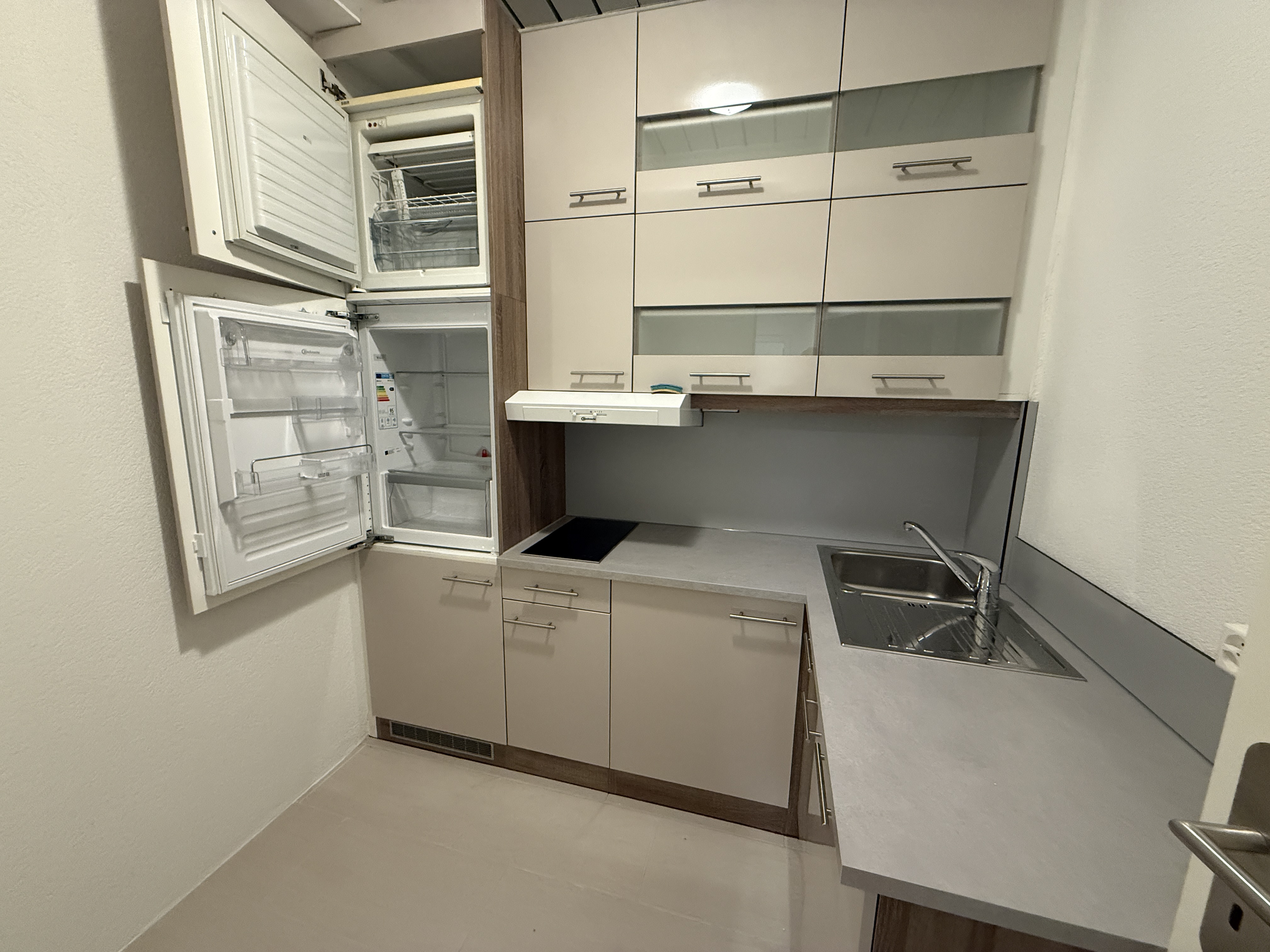 - Cuisinette agencée avec lave-vaisselle, frigo, congélateur, plaque vitrocéramique et rangements